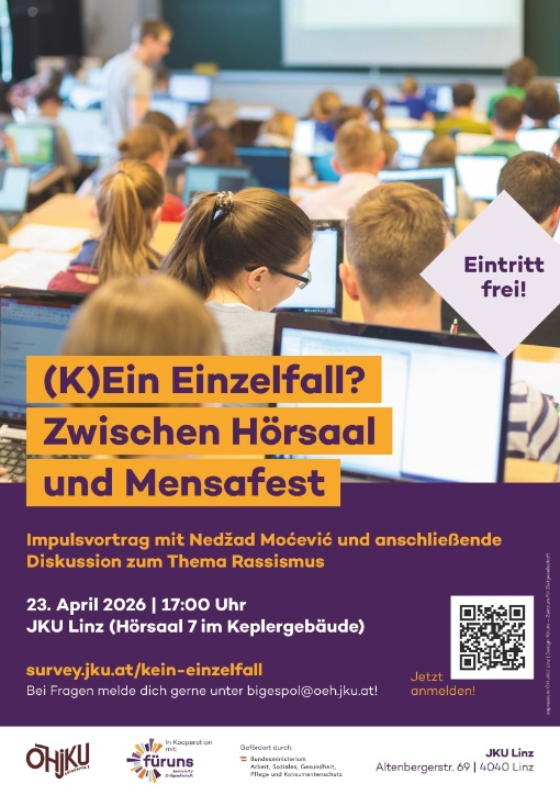 (K)Ein Einzelfall? Zwischen Hörsaal und Mensafest JKU Linz Kategorien: Diverses Gratis Datum:23.04.2026 ©