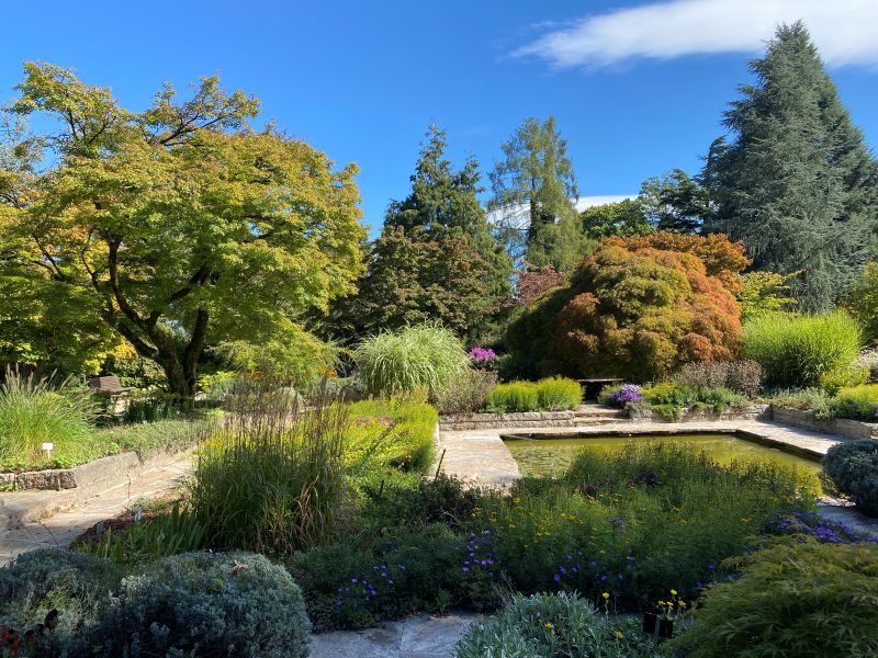 Als solche sind sie ein Ort der Spiritualität und Kontemplation. Der Garten lädt zum Verweilen ein.