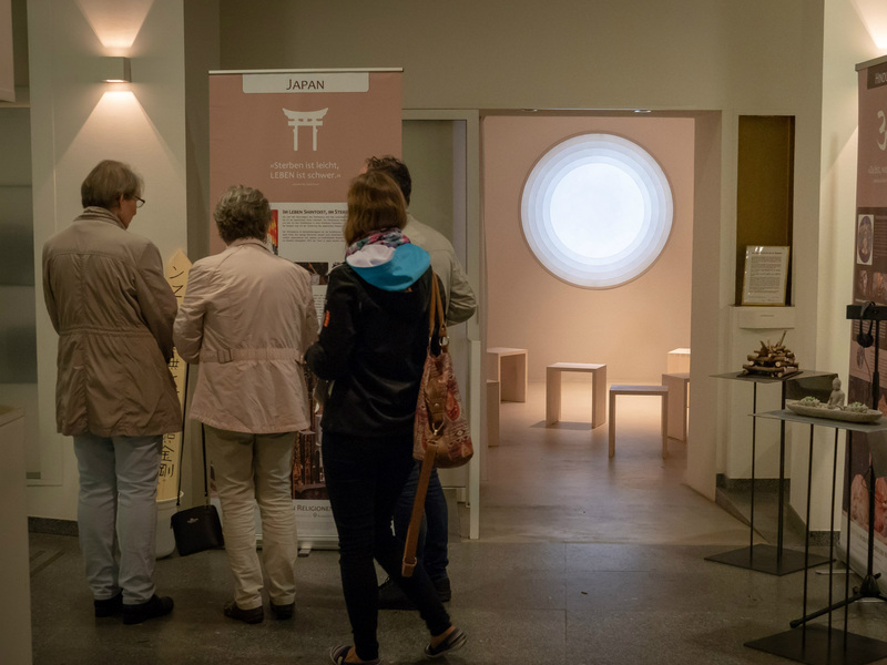 nisse verständlich. Zehn Audiostationen laden zum Hören ein, z. B. von Liedern und Gebeten, die bei Bestattungen Verwendung finden. Darüber hinaus gibt es viele Elemente zum Angreifen.