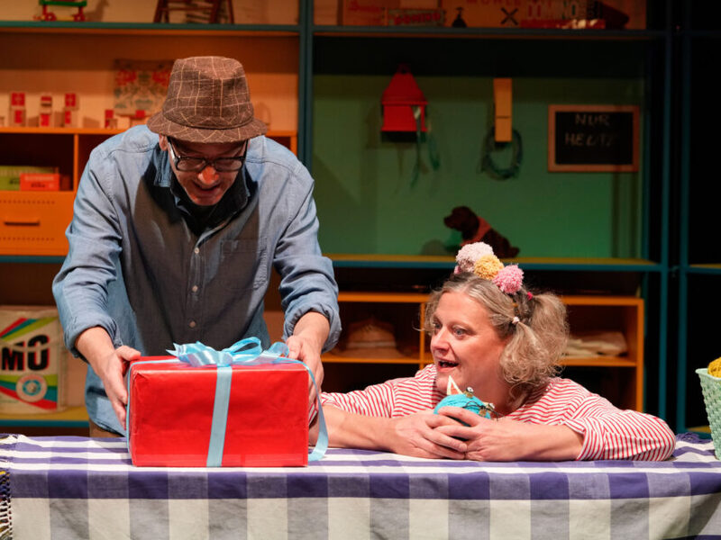 „Was ist da drin, Opa?“, fragt Anna, die das rote, liebevoll verschnürte Päckchen sieht, das ihr Großvater gerade eingepackt hat.