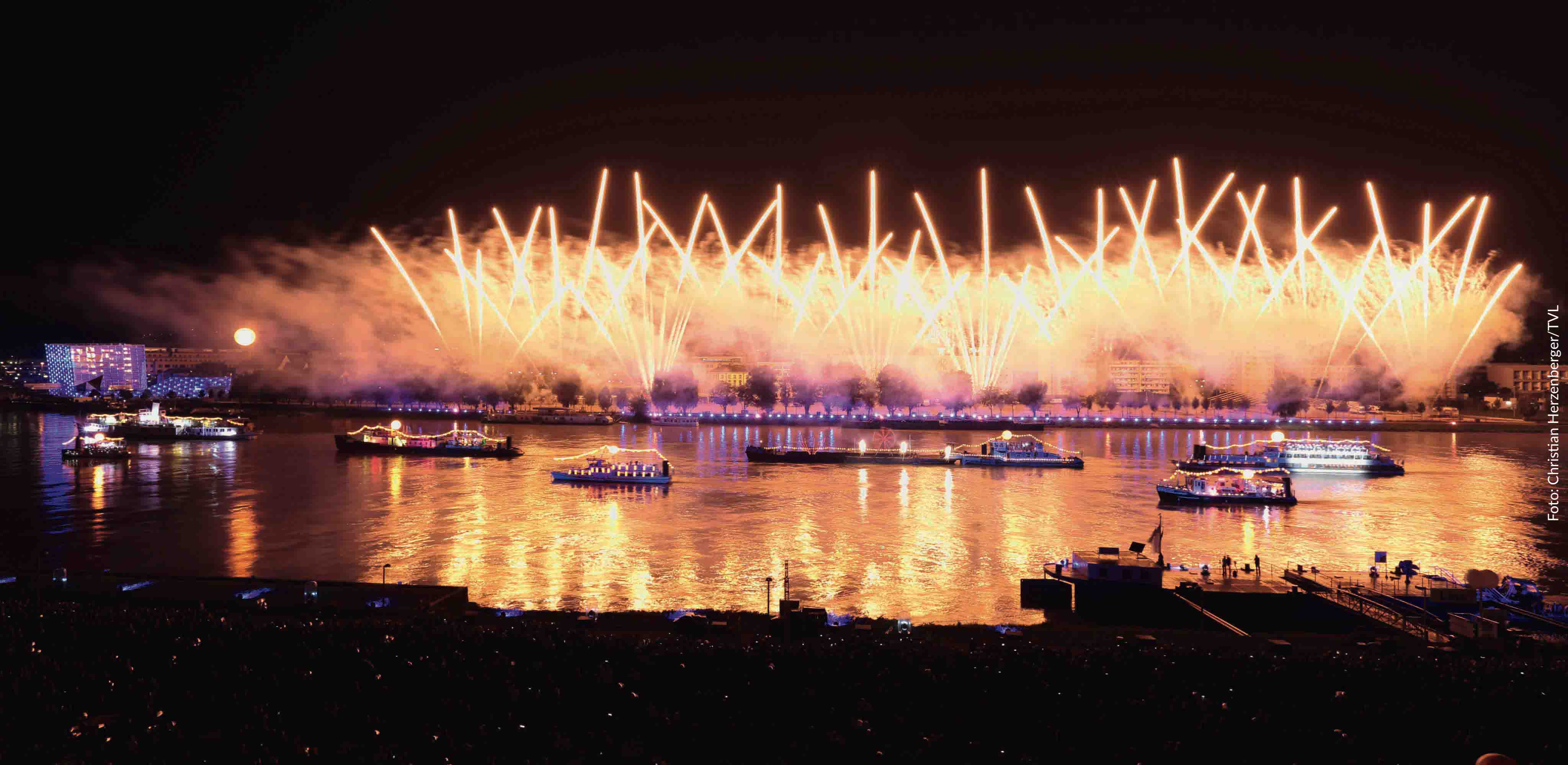 Tausende Schaulustige zieht das Klangwolke-Festival in Linz jedes Jahr an. Seien Sie hautnah dabei und genießen Sie einzigartige Ausblicke von unserem eleganten Galaschiff Regina Danubia aus! Direkt vom Wasser aus haben Sie einen einmaligen Blick auf das Spektakel. Und auch an Land im Donaupark haben wir für unsere Fahrgäste einen extra VIP-Bereich reserviert. Es wartet ein unvergesslicher Abend auf Sie!