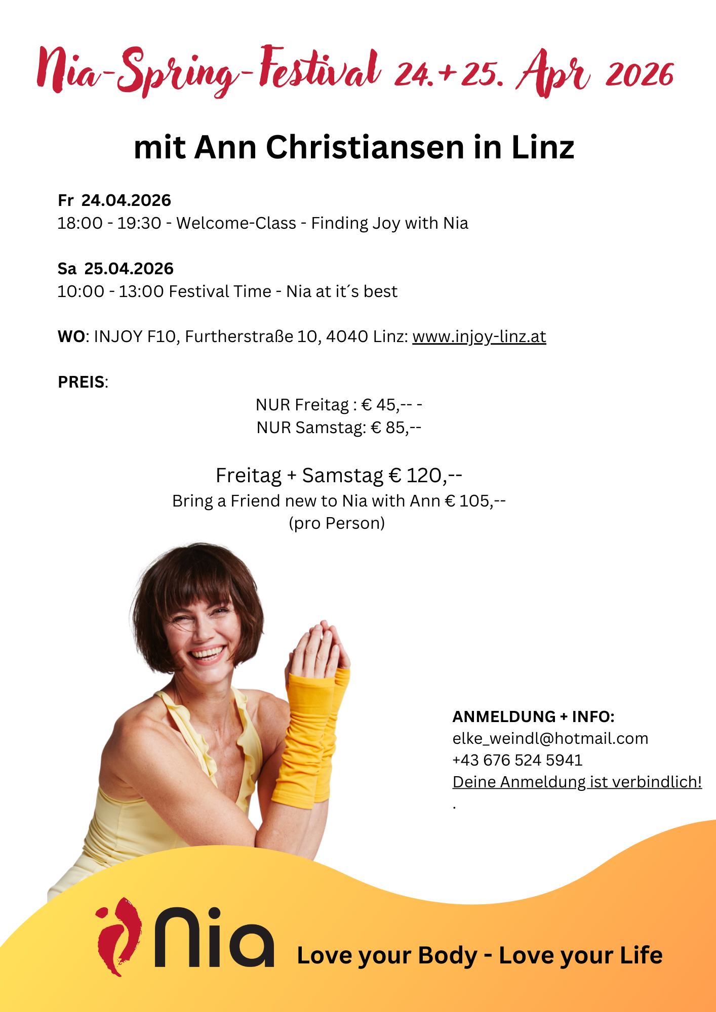 ANMELDUNG + INFO: elke_weindl@hotmail.com, deine Anmeldung ist verbindlich.