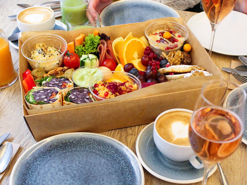 Brunch: vegan/vegetarischer Brunch mit vielen Köstlichkeiten wie Hummus, Joghurt, Eier, Gebäck, Obst, Gemüse, Säfte, Bananenbrot, Pancakes, uvm…