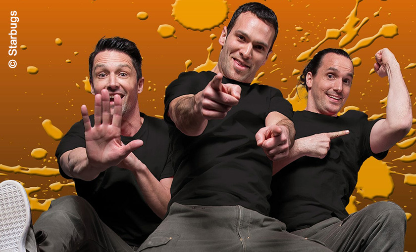 Von New York bis Tokio haben die drei Comedians aus der Schweiz mit einer einzigartigen Mischung aus Tanz, Akrobatik und Comedy in die Herzen des Publikums gespielt. Mit hinreißender, verblüffender Dynamik verlassen Starbugs Comedy in ihrer Show die bekannten Sphären der Comedy. Die drei coolen Typen ziehen ihr Publikum so umwerfend fantasievoll, witzig und listig herein, dass es aus dem Staunen nicht mehr herausfindet.