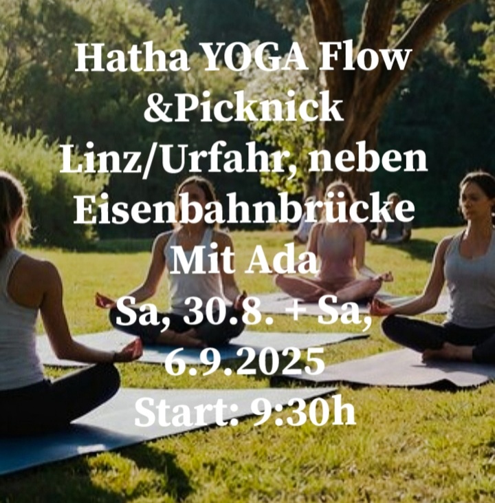 Lasst uns gemeinsam ins Weekend starten mit erfrischenden und erdenden Hatha Yoga-Flows und anschließendem, gemeinsamem Picknick (optional!). Jede/r nimmt mit was sie/er am liebsten isst/trinkt, es darf auch gerne was miteinander geteilt werden. So kommen wir ins Gespräch und nähren den herzlichen Yoga-spirit über die Matte hinaus, ins Leben hinein! Das ganze im Baumschatten des "Yoga-Donaupark", neben der Eisenbahnbrücke rechts unten, Urfahrseite. Ich freue mich sehr auf Euch! All levels welcome, bitte eigene Matte mitbringen.