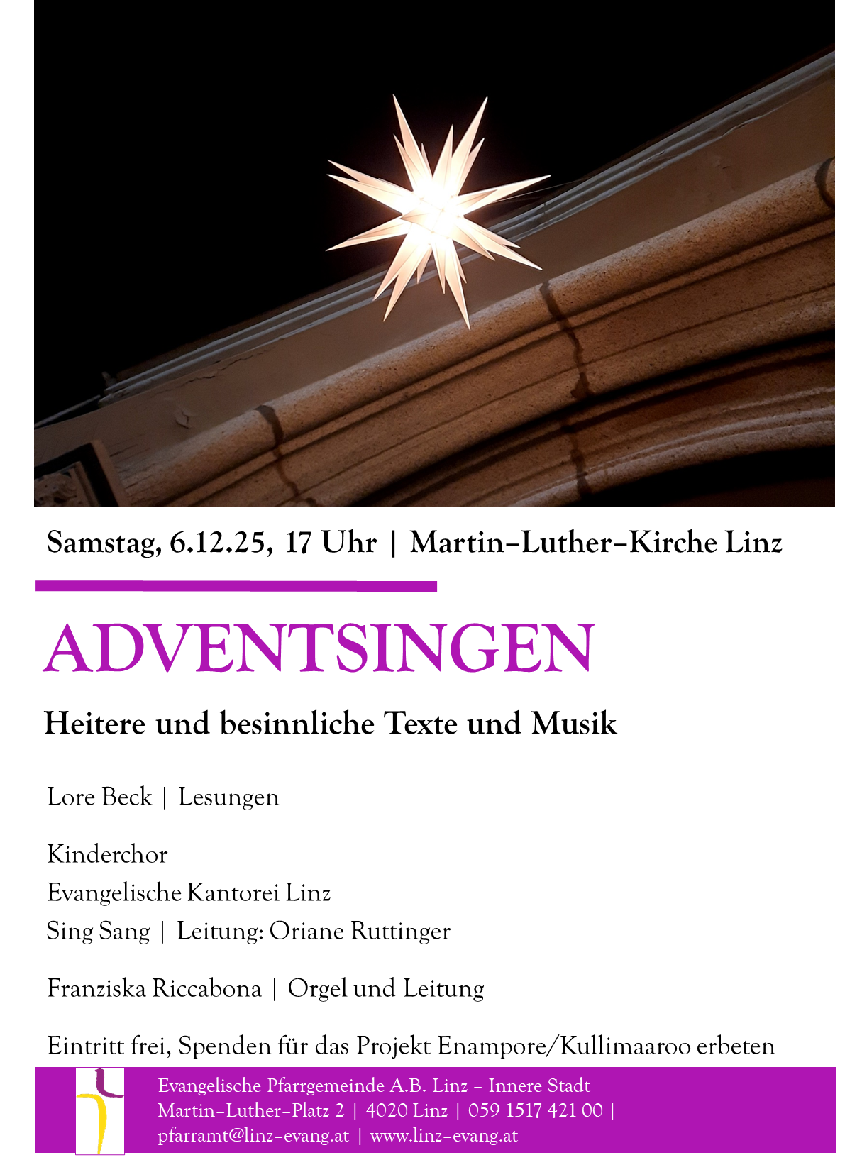 Eintritt frei, Spenden für das Projekt Enampore/Kullimaaroo erbeten.