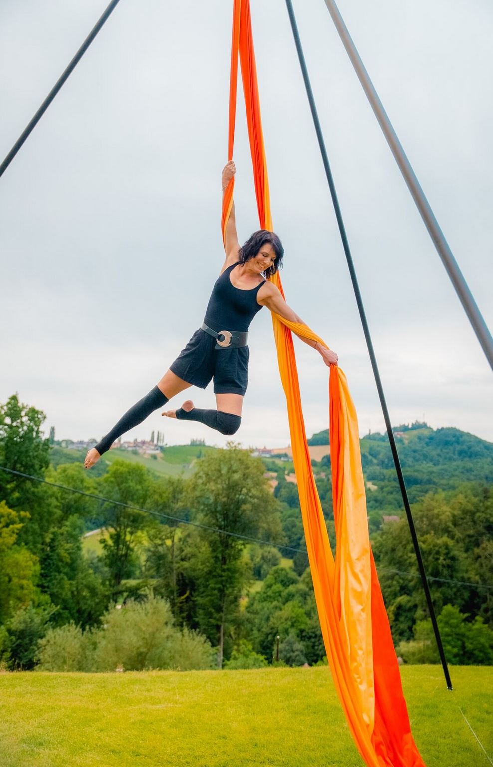 Egal ob Anfänger*in oder Neugierige*r – wir zeigen dir in entspannter Atmosphäre die ersten Grundlagen der Luftakrobatik.