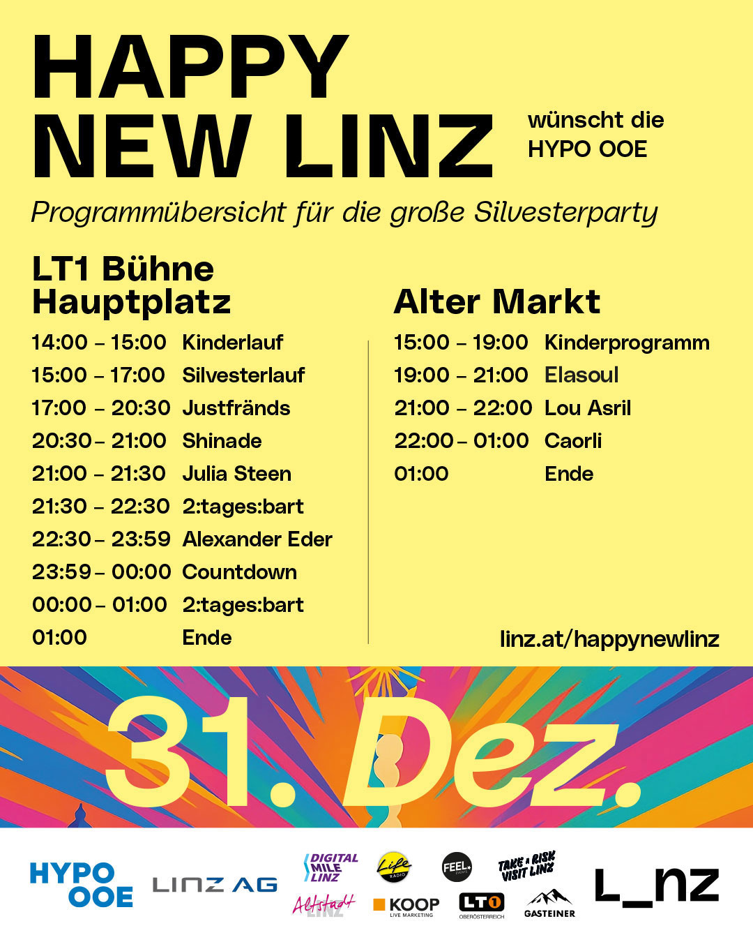 „Happy New Linz“ wünscht die HYPO OOE – Die große Silvesterparty in der Innenstadt 🍾