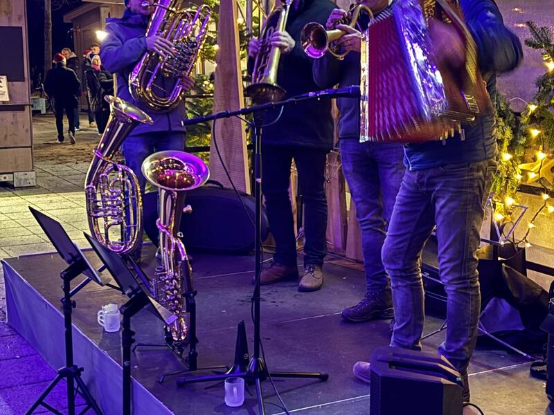 In der Besetzung Flügelhorn, Basstrompete, Steirische Harmonika und Tuba spielen die vier Musiker mit stimmungsvoller Musik zum Advent auf.