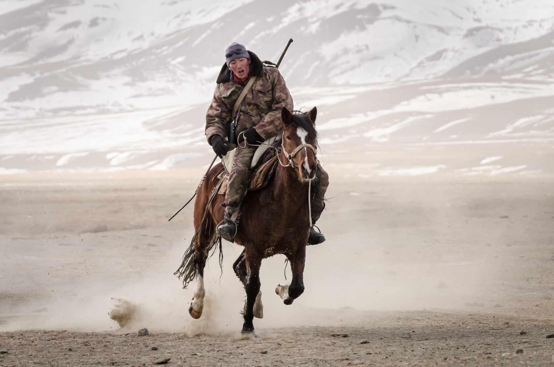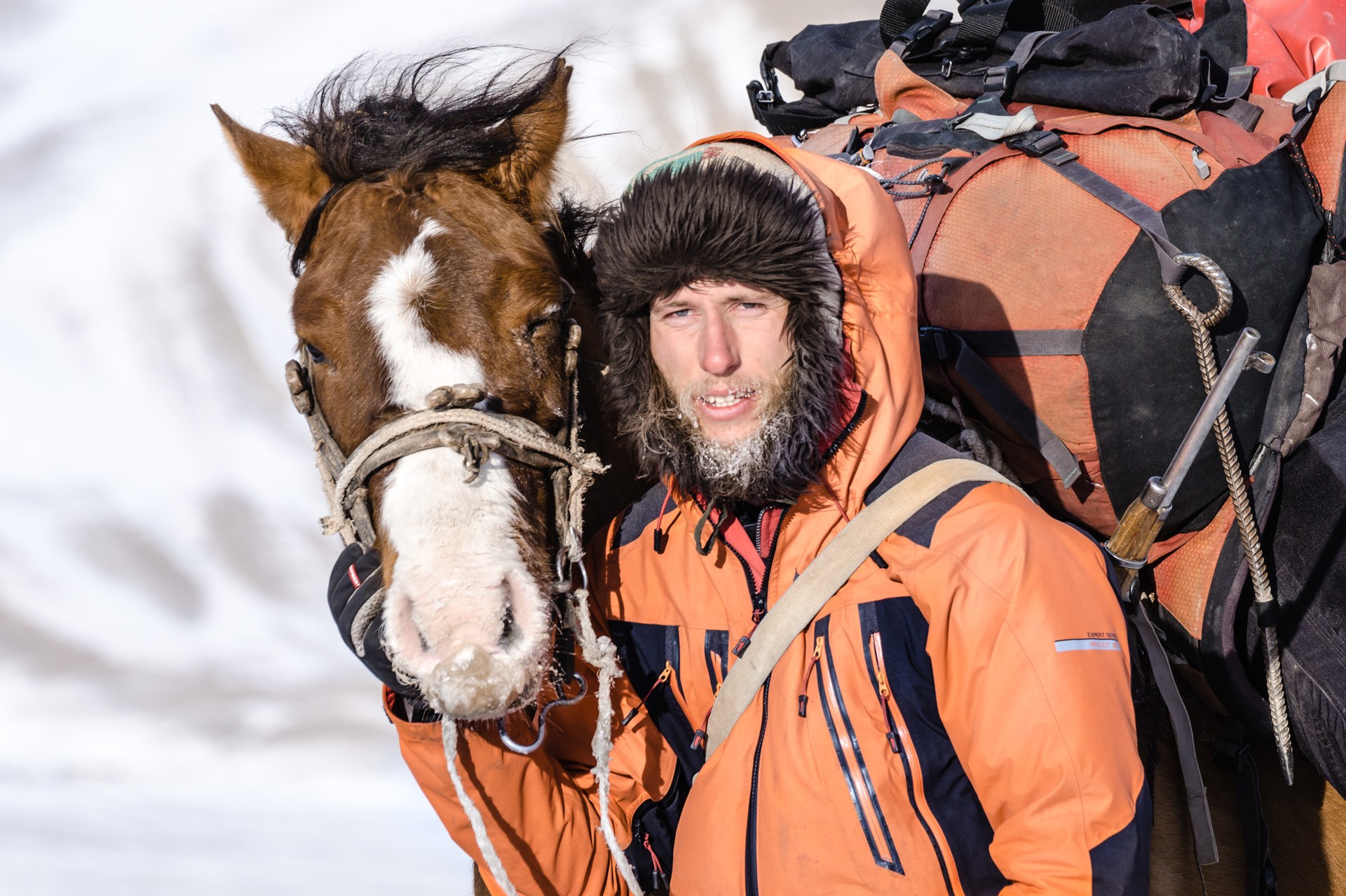 Obwohl er weder reiten kann noch Erfahrung mit Pferden hat, kauft sich Christian Bock auf einem Viehmarkt in Kirgistan sein erstes eigenes Pferd. Mit Zelt, Ausrüstung und Proviant durchstreift er mehrere Monate lang das Hochgebirge zwischen Kasachstan und China. Diese Art zu reisen lässt ihn nicht mehr los. Inzwischen war er über fünf Sommer und zwei Winter mehr als 5000 km zu Pferd unterwegs – teils allein in der Wildnis, teils mit Hirten und Jägern. Kirgistan ist ihm zur zweiten Heimat geworden.