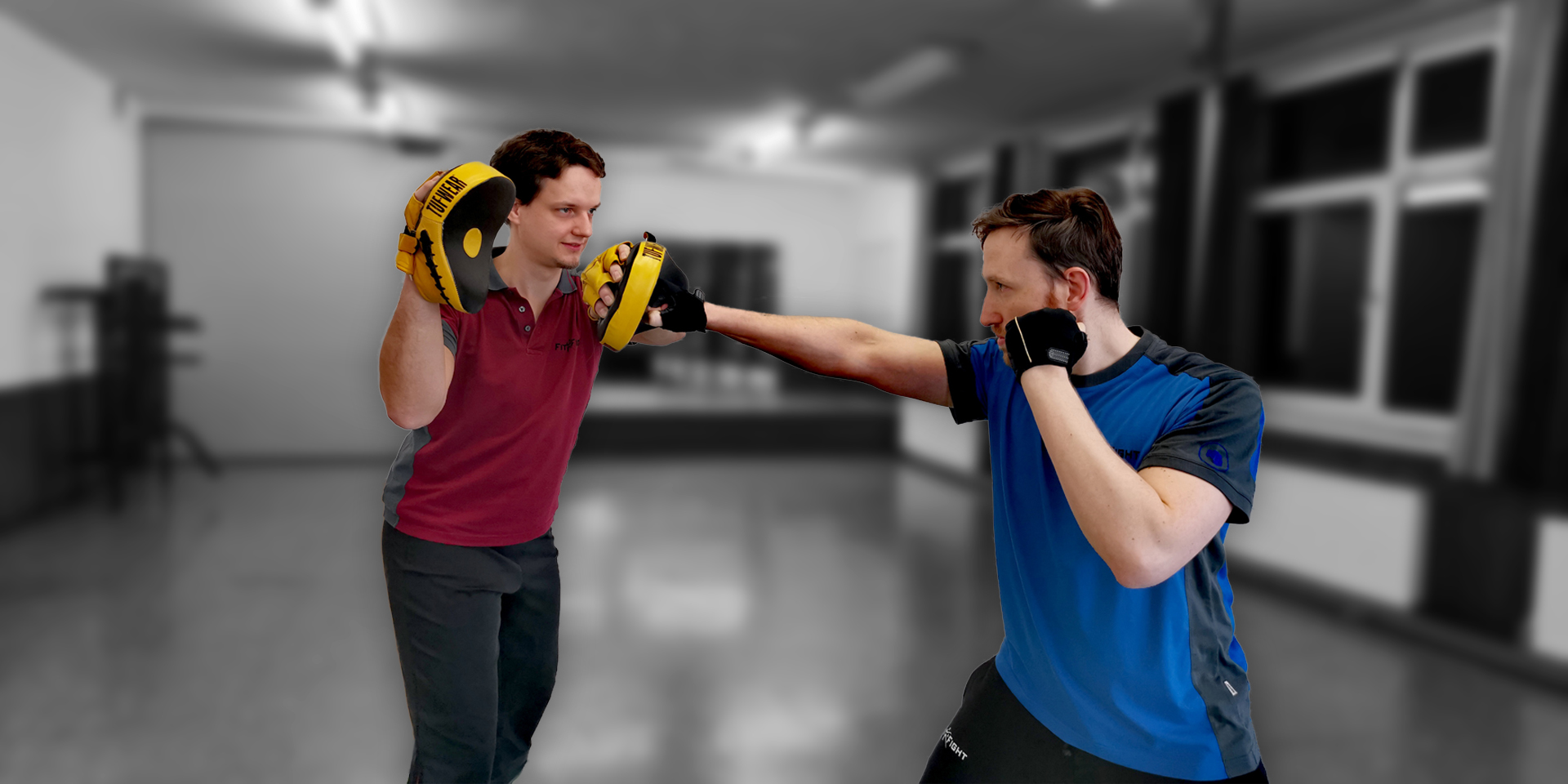 - Partnertraining zu zweit (1 Pratzenführer mit Handschlagpolster und 1 Schlagausführender - optional mit Handschuhen) - Die Rollen werden während dem Training immer wieder getauscht.