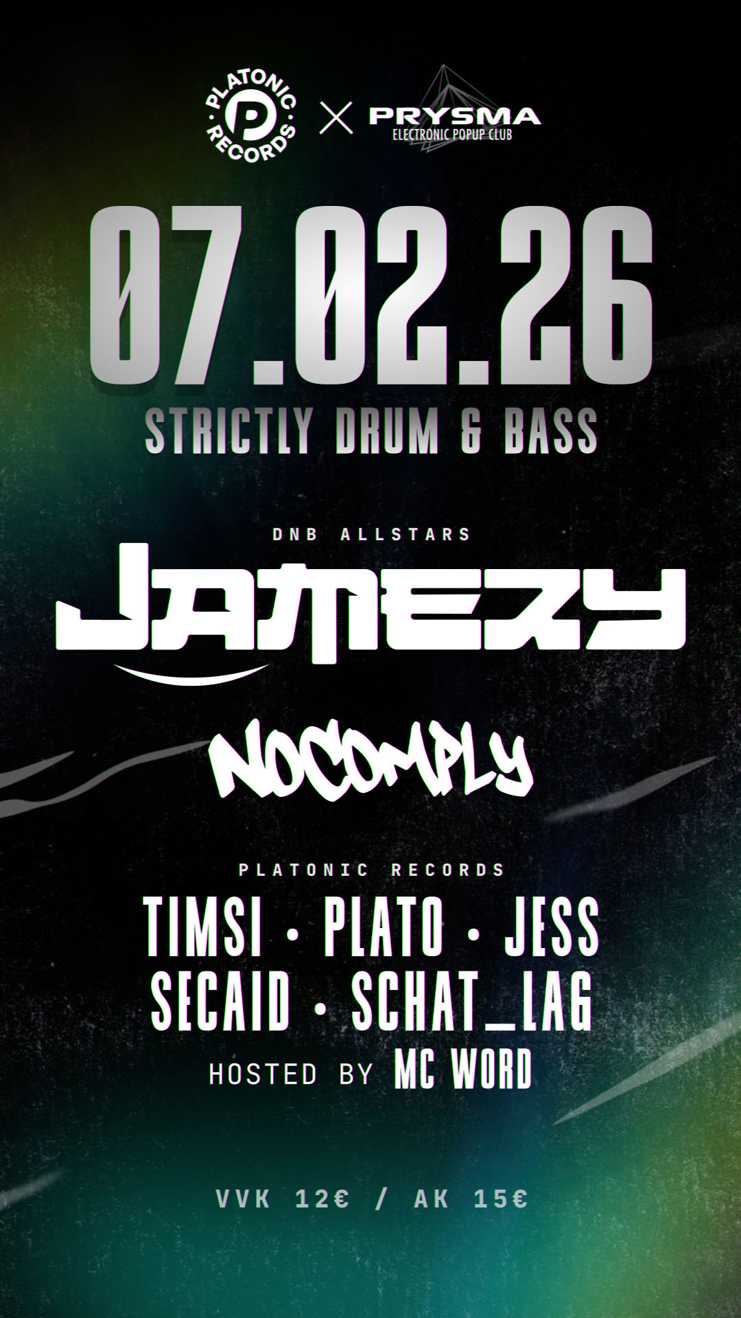 Freut auch auf JAMEZY (DNB Allstars) und Special Guest NoComply - ready to tear the place down! 🙌🏻