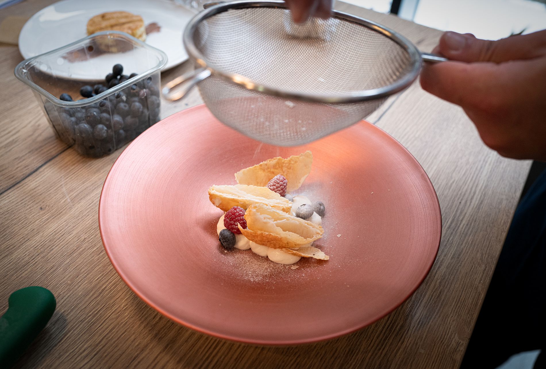 - Millefoglie mit knusprigem Blätterteig, gefüllt mit einer leichten Ricottacreme und frischen roten Früchten