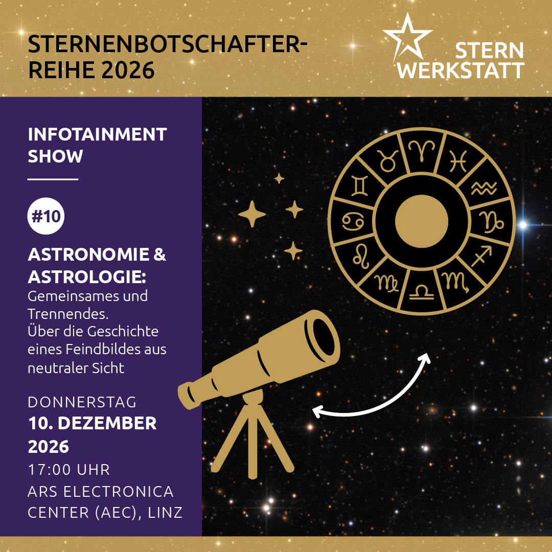 Der Sternenhimmel fasziniert die Menschheit seit Anbeginn. Seine Schönheit, seine Ordnung und sein unendliches Geheimnis haben schon immer Fragen aufgeworfen und Inspiration gegeben. Mit der „STERNENBOTSCHAFTER-Reihe 2026“ möchten wir dieses uralte Staunen mit modernster Technologie, fundiertem Wissen und einem besonderem Einblick verbinden.