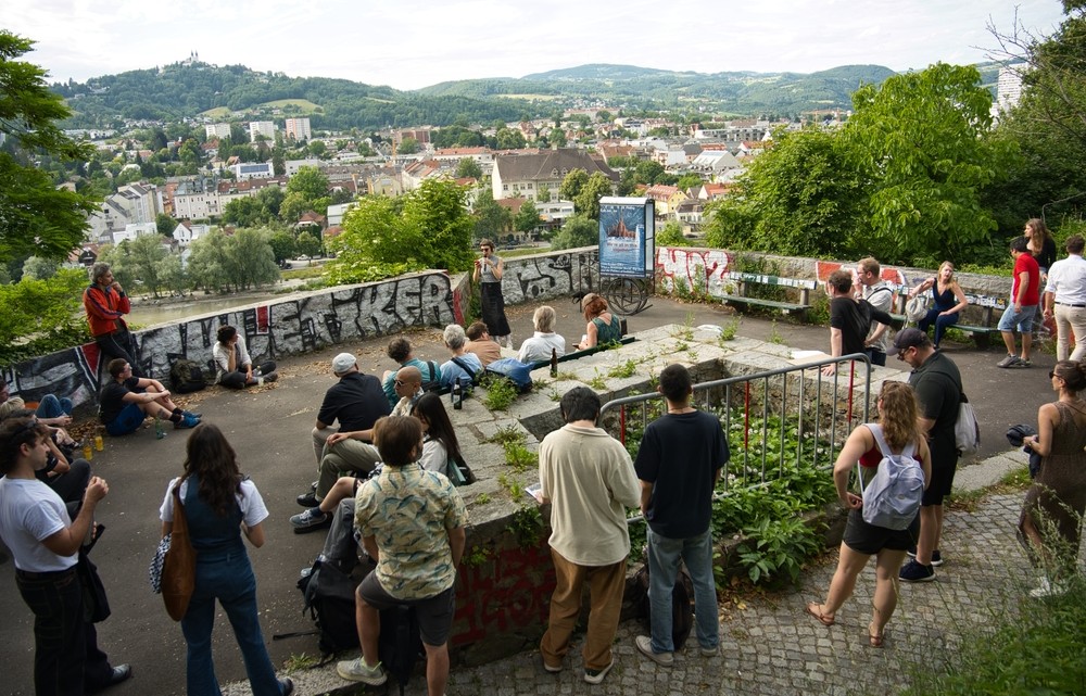 Zum vierten Mal verwandelt das Festival für Kunst in digitalen Kontexten und öffentlichen Räumen einen Ort in Linz in einen frei zugänglichen Kunstraum. Nach der Donaulände (2019), dem Mühlkreisbahnhof (2021) und dem Hafenviertel (2023) wird 2026 der Schlossberg mit Schlosspark, Schlossmuseum, Rosengarten, Keplerwiese, Schlossbergstollen und Martinskirche zum rund fünf Hektar großen Festivalschauplatz.
