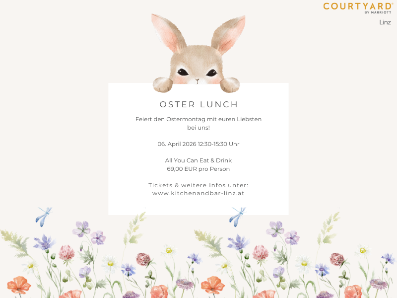- Für Mehr Infos folgt uns auf unsere Social Media Kanäle Facebook & Instagram des Courtyard Linz!