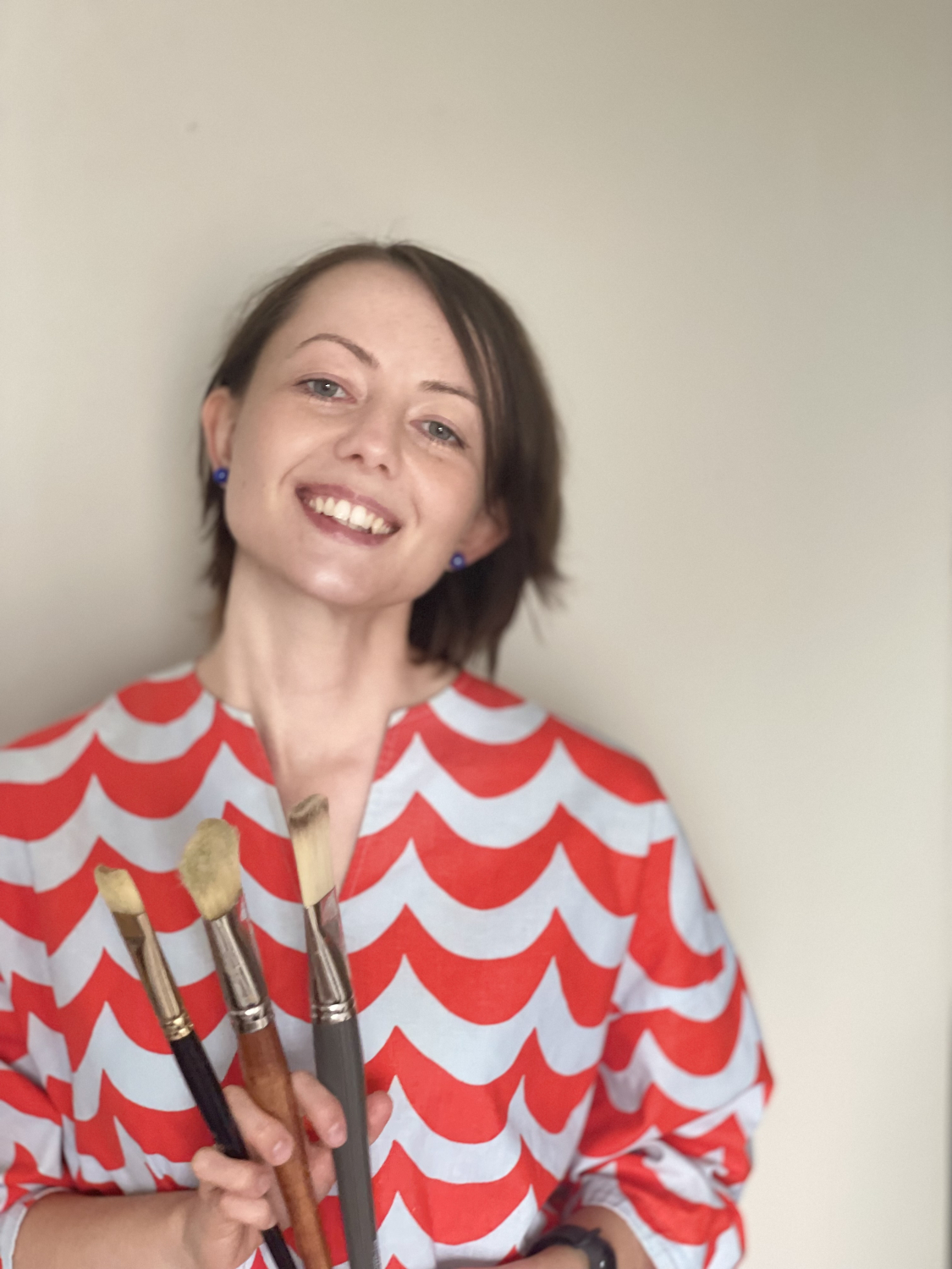 Sanfte, teils pastellige Farben gehen ineinander über und erinnern an Wasser, Himmel oder Landschaft. So entsteht ein Gefühl von Weite und Bewegung.