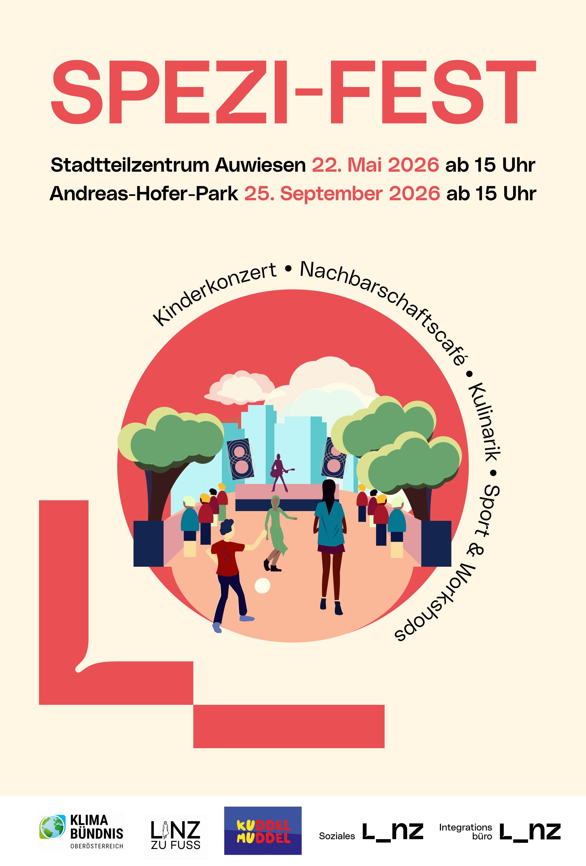 Im Rahmen der "Woche der Vielfalt" findet heuer die Premiere der Stadtteilzentrums-Feste "SPEZI" im Linzer Stadtteil Auwiesen statt. SPEZI steht für Stadtteil, Partizipation, Empowerment, Zusammenhalt und Integrationsförderung.