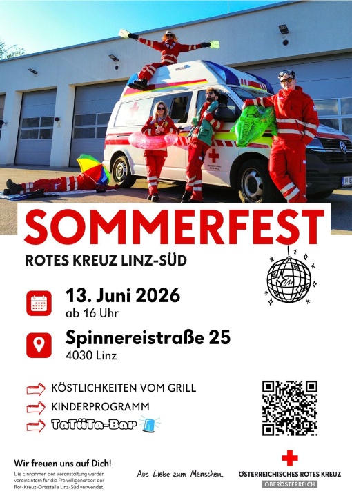 Rotes Kreuz Linz Süd Sommerfest Rotes Kreuz Linz-Süd Kategorien: Freizeit & Unterhaltung Gratis Für Kinder geeignet Datum:13.06.2026 ©