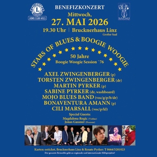 Stars of Blues & Boogie Woogie – Benefizkonzert Brucknerhaus Linz Kategorien: Musik Datum:27.05.2026 ©